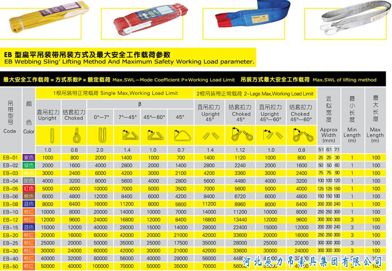 扁平吊裝帶的***大載荷范圍為:0-50噸,長(zhǎng)度范圍為:1-100米。