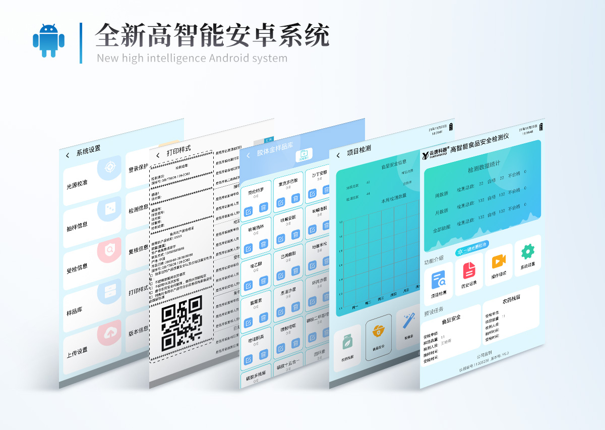 9.7、打印系統:內置全新打印機,新創自定義打印方式,可按需靈活勾選控制:產品合格證(國家農業部標準要求),二維碼,抽樣信息、檢測信息,受檢信息、復核信息、抽樣日期、檢測日期等信息的打印。