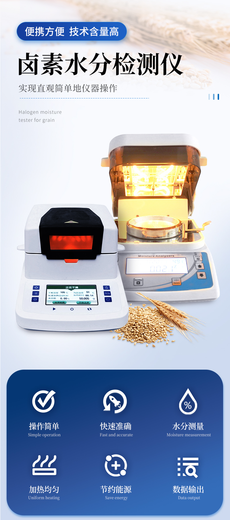 鹵素水分儀應(yīng)用于一切需要快速測(cè)定水分的行業(yè),只要是顆粒狀、粉末狀、片狀物、無(wú)揮發(fā)性液體均可測(cè)量,如:糧食、化工、醫(yī)藥、塑··· 熱線:133-7109-8225